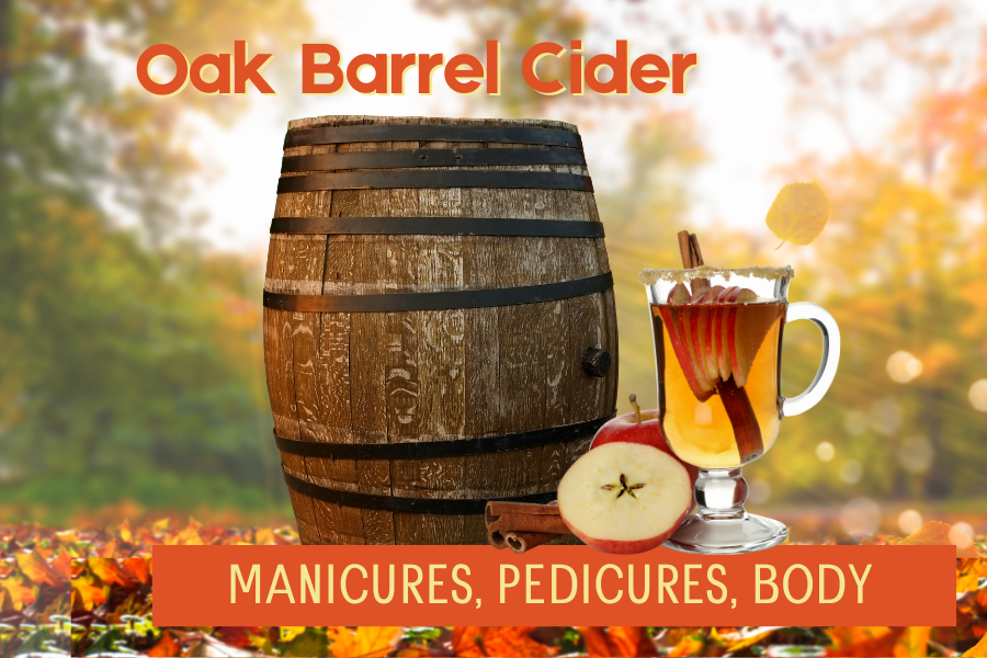 Sit back and enjoy a Full-Body Soak, Body Exfoliation and Cream Application with our with our cozy scent, Oak Barrel Cider. Scents of warm apple cider, spicy cinnamon and woodsy cedar come together for an oh-so-inviting experience — paired perfectly with a Biscoff cookie and a cinnamon stick–infused beverage. (60 minutes)